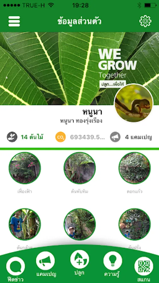 Charoen Pokphand Group and True Corporation together with the Ministry of Agriculture. Royal Project Foundation, the Forest Department of National Parks, Wildlife and Plant Conservation. Marine and Coastal Greenhouse Gas Management Organization And the Foundation's Queen Sirikit Park. Synergies sector driven projects. "In order to grow ... We Grow Together", which was created as a mechanism to support the planting of trees in modern society. To grow and share information through the app. Following the update, the growth has continued. Share links to social networking tree growers. As well as an archive of knowledge about the biggest tree.