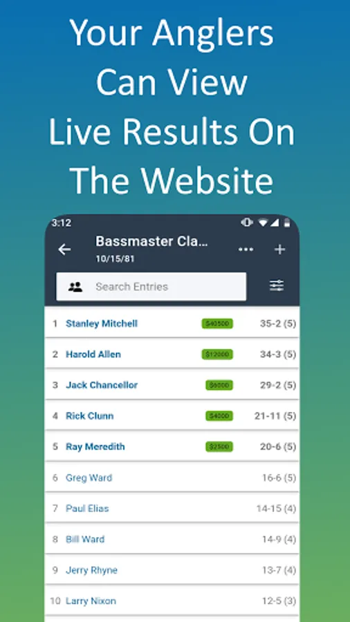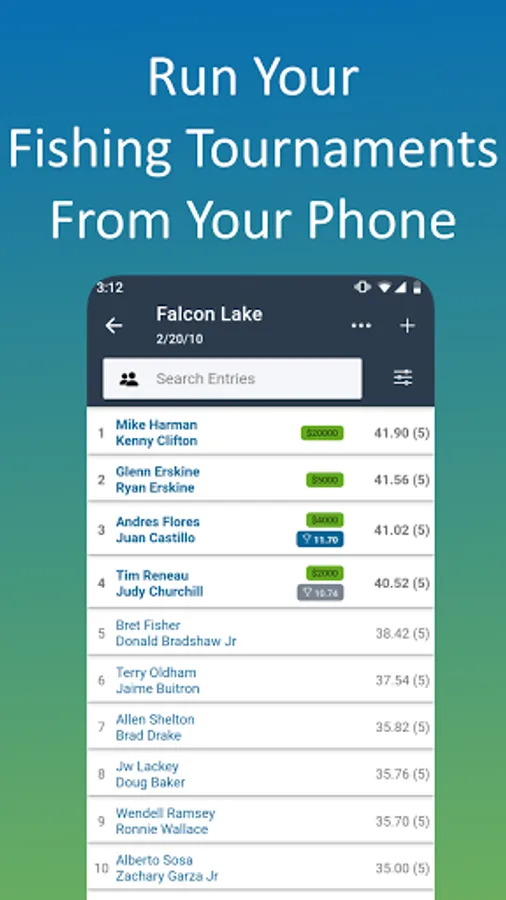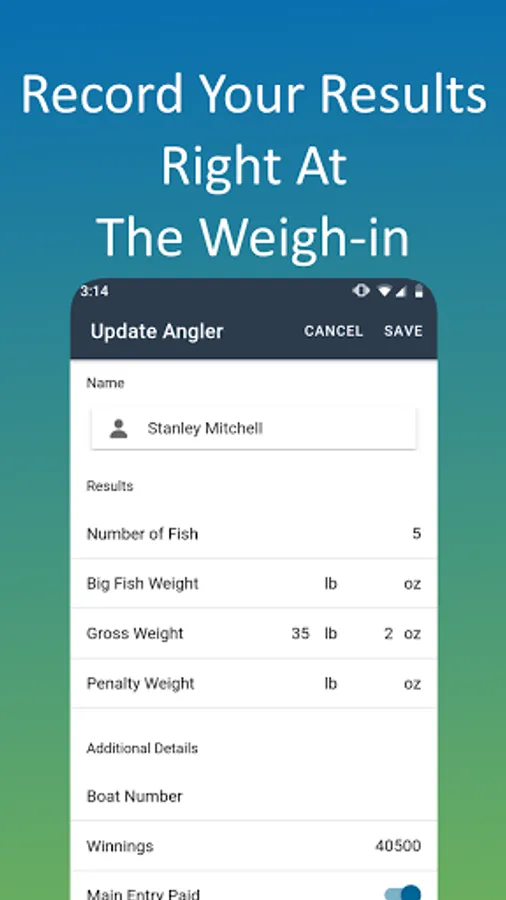 7. On Tournament morning, as fishermen come to register and pay their entry fee, enter their names in the Tournament (without any weights at this point).