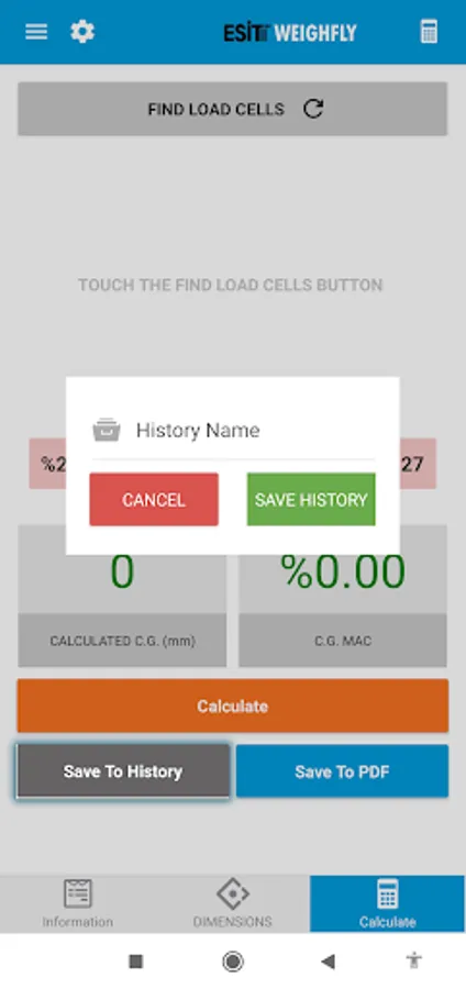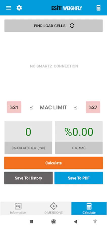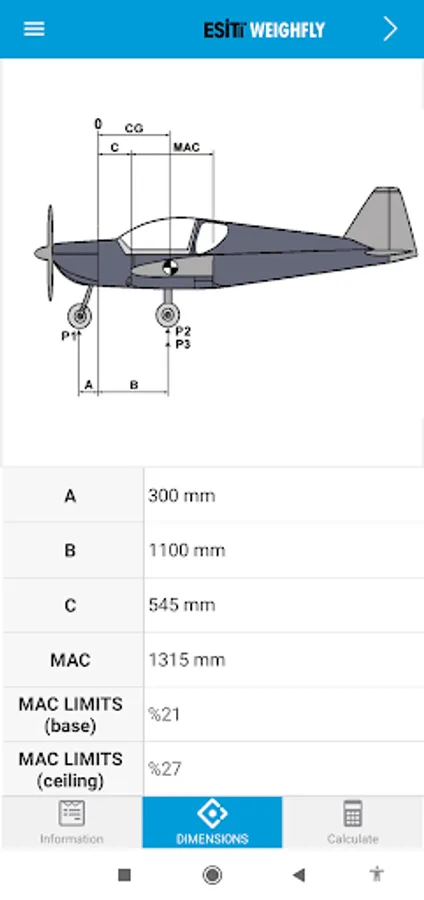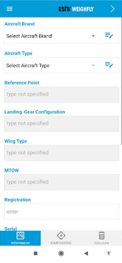 Esit Weighfly is an application designed to determine the center of gravity (CG) points of aircrafts by measuring the weights from wheels or jacks in general aviation aircrafts.