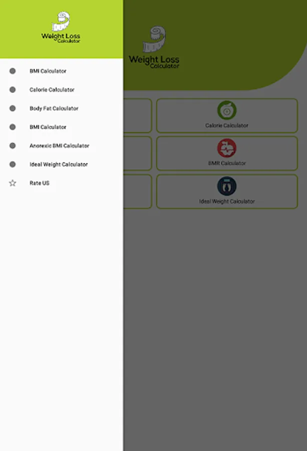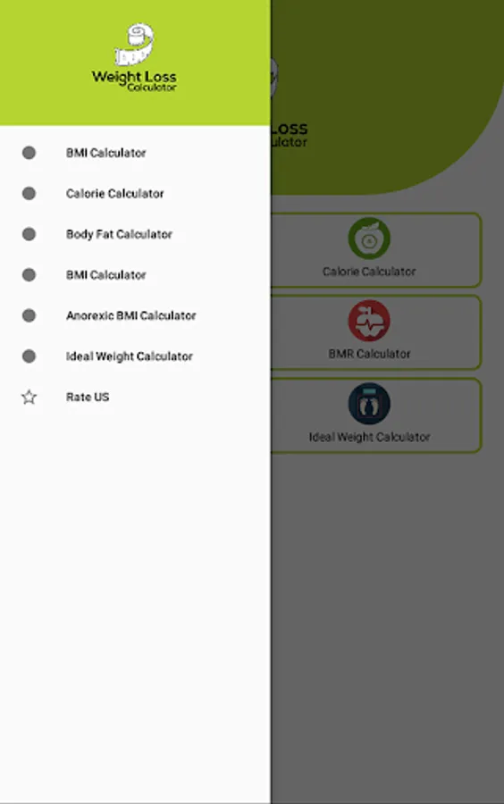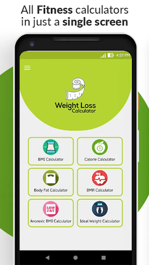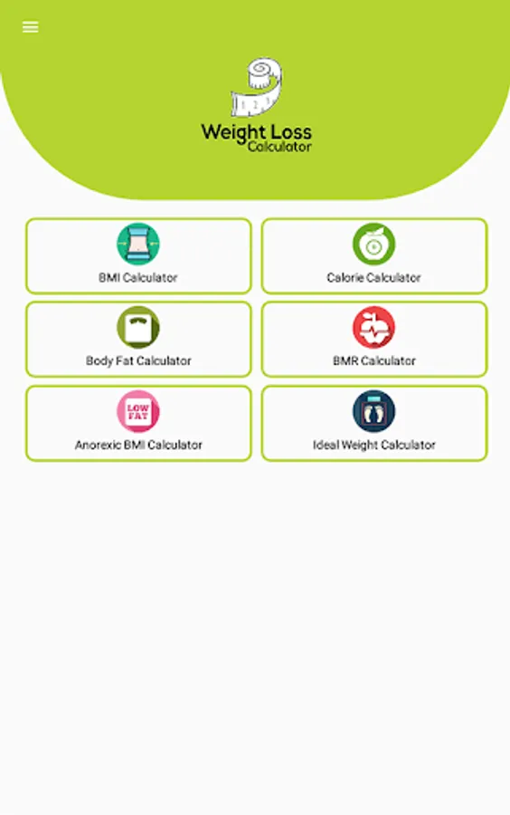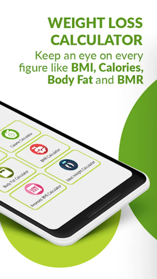 Weight Loss Calculator is complete weight loss tracker with Calorie Calculator, BMI Calculator, BMR Calculator and Body Fat Calculator integrated in it. It tells how much weight loss is required to attain ideal weight.