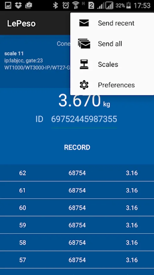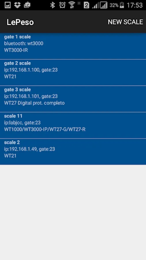 With LePeso you can operate any scale equipped with Weightech indicators directly by phone. The application manages several scales, connecting to each one individually and saving the weighing records for sending by e-mail or even to print tickets directly to the printer (*).