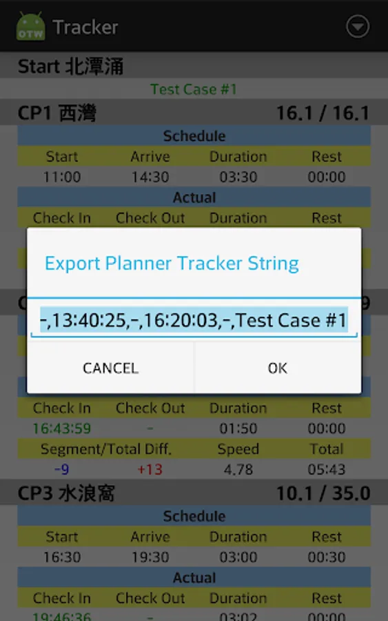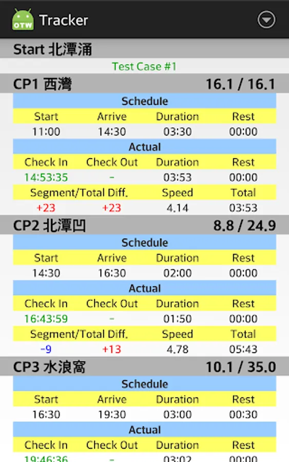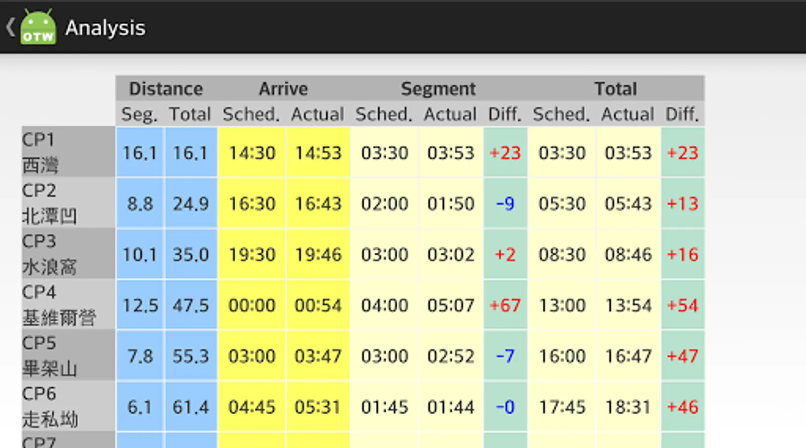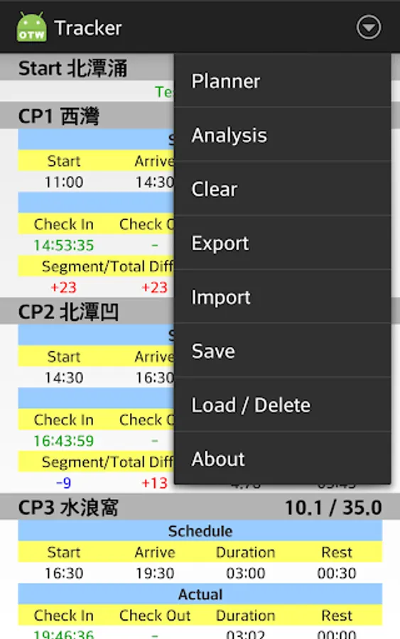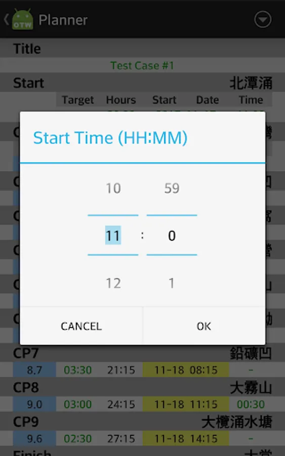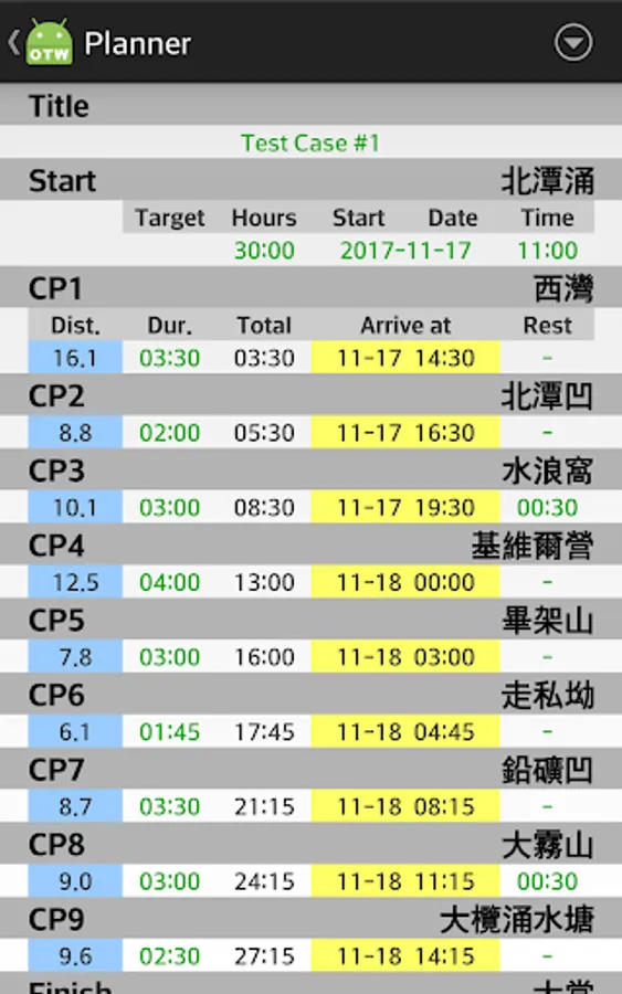 My friend's idea to plan and track his Trailwalker (HK 100km) results.