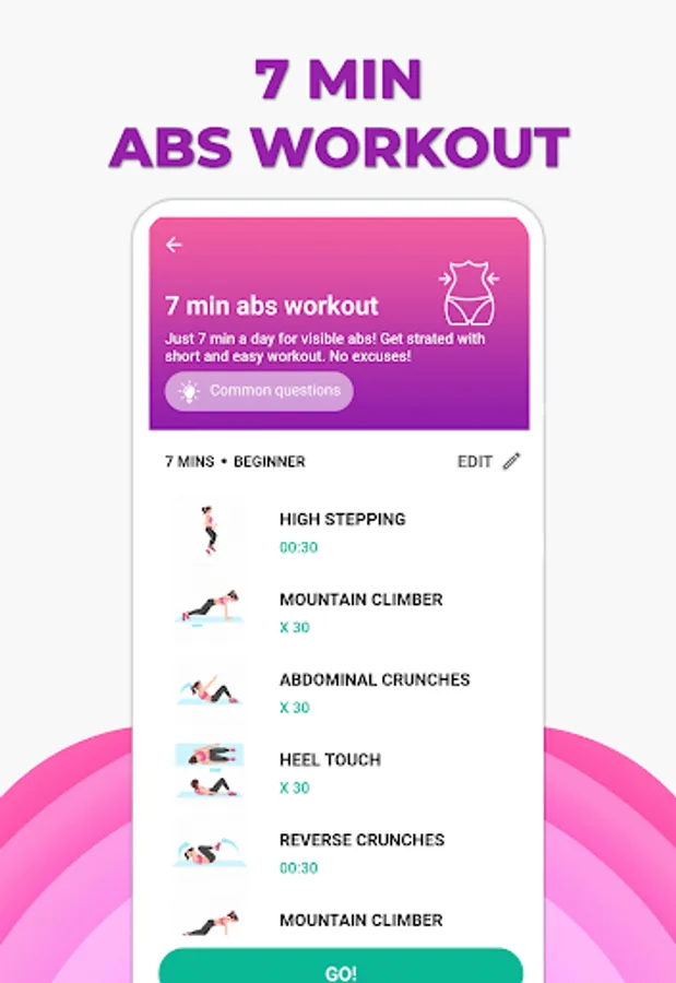 โ Abs workout exercise with 3 difficulty levels (easy, medium, hard) designed by experts.