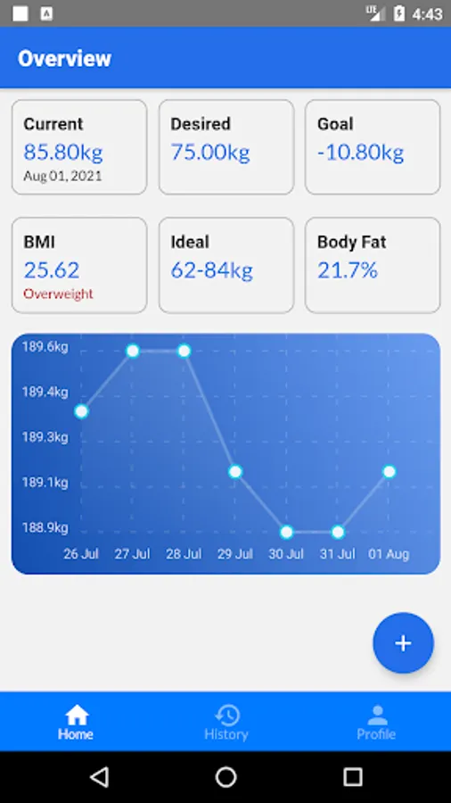 Weight Loss Tracker helps you to track weight loss over a period of time and to achieve your weight loss goals. The app features a nice chart layout to display your weight loss journey. It also provides you with BMI and Body Fat calculations based on your weight, height and gender metrics.