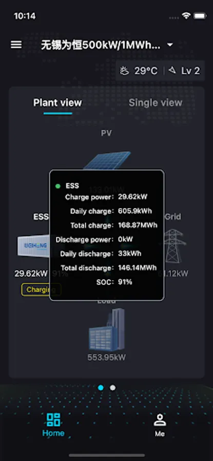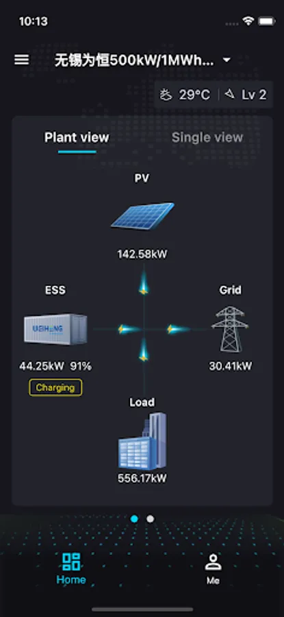 PANGU OS App is a mobile product of Jiangsu Weiheng Intelligent Technology, which serves the whole life cycle management of commercial and industrial new energy power plants. It is suitable for system monitoring, power control and energy management of energy storage stations, microgrids, new energy storage integration projects, etc. It can cover the whole scenario of generation, transmission, distribution and use. It supports the analysis of system capacity and load demand, configures the optimal real-time charging and discharging strategy under the condition of maintaining high system efficiency, realizes centralized management, diagnosis and early warning, strategy control, and carbon emission analysis of BMS and PCS of multiple energy storage power plants, provides the basis for device fault diagnosis, and uses big data, deep learning and machine learning algorithms to help build a knowledge base of device faults and achieve intelligent operation and maintenance.