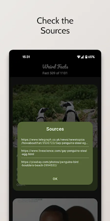 🔍 Fact-Check the Oddities: Ever wondered if those incredible facts are too good to be true? With "Weird Facts," you can delve deeper by checking the sources for each astonishing fact. Verify the authenticity and become an expert in your own right.