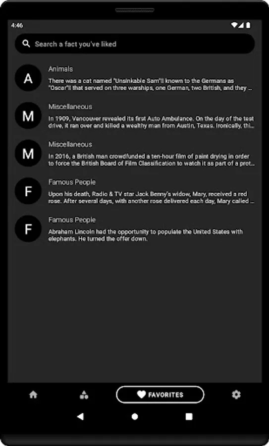 📆 Daily Delight: Keep your thirst for knowledge quenched with our regularly updated database of astounding facts. Every day, you'll be greeted with a fresh dose of wisdom to expand your horizons and boost your general knowledge.