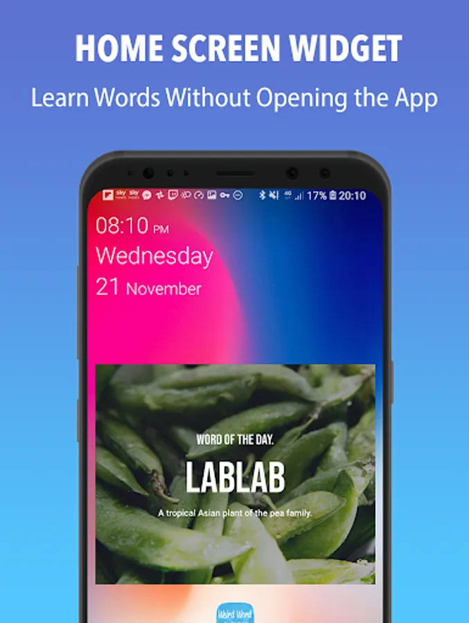 • Weird word a day is a vocab builder that shows you a daily high-quality image related to the unconventional and strange word to help make it memorable, unique and exciting to aid in achieving your learning goals.