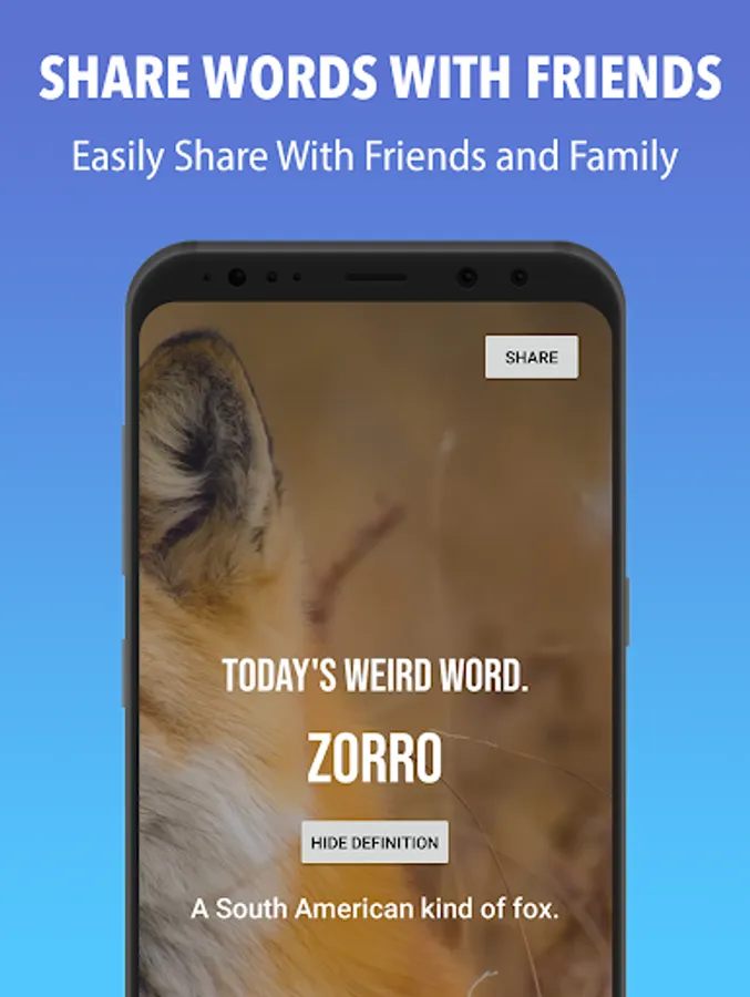Weird words daily is a vocab builder that has words that are collected from all over the world, with strange words originating from Scotland all the way to Africa, travel the world with unconventional words. These words are used from reputable sources like Oxford English Dictionary, Merriam-Webster among many other dictionaries, specifically tailored to suit you and your vocabulary building and learning needs and to achieve your learning goals and increase your vocabulary size. Build your vocab with this definition app!