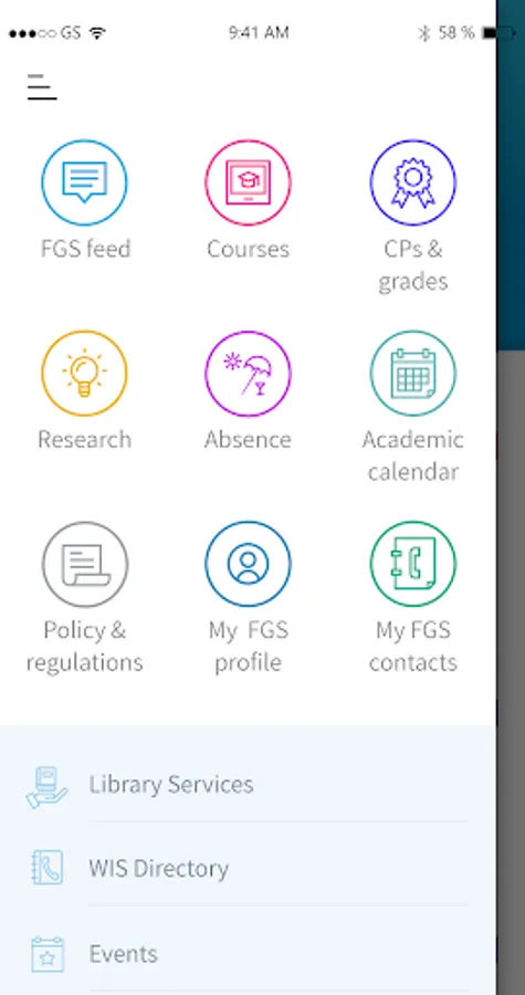 FGS students and postdocs use this friendly and dynamic App to easily access critical academic information and use its interactive interface to conveniently fulfill administrative tasks anytime and anywhere. *FEED*: Receive general FGS announcements and personal administrative and academic notifications; *COURSES*: Search for a course; View course details; Register to courses; Cancel course registration; Submit feedback on courses; Teaching assistants may submit their hour reporting. *GRADES & CPs*: View summary of credit points and grades; View transcript; *RESEARCH*: View dates associated with progress reports and thesis (i.e. deadline, extension, submission, defense and approval); Ask for extensions; Update the defense date); Register to MSc rotations and MSc research group; View feedback re. rotation performance); *ABSENCE*: Report on absence; view absence summary; view absence history (by type and by date); *FGS REGULATIONS*: Search and view; *PROFILE*: Status and relevant affiliation details; Update personal particulars through selfie HR; Travel budget number and balance; Validity of visa and medical insurance (international students/postdocs); Retrieve monthly fellowship reports. *FGS CONTACTS*: Personalized FGS contacts; *ACADEMIC CALENDAR*: View current year's and next year's academic calendar; *WIS DIREVTORY*: Access contact details of everyone on campus; *Daily Menu*: Daily menus, prizes and specials offered by the cafeterias on campus; *WIS LIBRARY SERVICES* (via link); *WIS INTEGRTED CALENDAR* (via link); *Campus MAP & NAVIGATION* (via link); and *Settings*.
