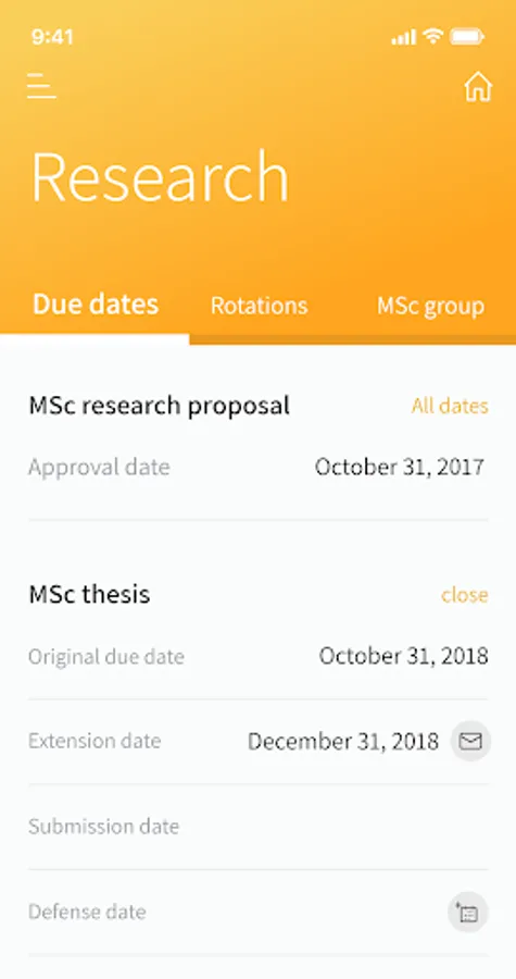 A similar set of features is available for Heads of research groups. However, due to Information Security restrictions, unlike the same features in the Desktop App, some of them provide the mentors with only partial information on their students. Yet, it is powerful and useful for them too. FEED*: Receive general FGS announcements as well as administrative and academic notifications; *MY GROUP*: Viw a list of current students and postdocs with basic administrative information about them (including: Status, tart date, FGS support of their fellowship, co-advisor, examiners and more). View a list of past students and postdocs plus information on the start and end dates of their studies (former students) or training (former postdocs), as well as ceremony year (former students). *Teaching*: View the list of courses they teach in the current academic year along with relevant information such as number of credit points, semester, day, time, location, date of first session, number of students enrolled, type of evaluation and relevant information; Access to the web course page; view of the feedback submitted by the participants; Report on tutorial hours and related tasks; View the list of courses they taught in the past three years; View the course grade average, number of students who received grades and the number of participants who submitted feedback on the course; View the feedback on each course. *MY GROUP CPs*: View summary of credit points gained and courses taken by each of their current students; *MY GROUP RESEARCH*: View dates associated with progress reports and thesis (i.e. deadline, extension, submission, defense and approval) of their current students; Ask for extensions. *MY GORUP ABSENCE*: View absence summary related to vacation days. *FGS REGULATIONS*: Search and view; *FGS CONTACTS*: Personalized FGS contacts; *ACADEMIC CALENDAR*: View current year's and next year's academic calendar; *WIS DIREVTORY*: Access contact details of everyone on campus; *Daily Menu*: Daily menus, prizes and specials offered by the cafeterias on campus; *WIS LIBRARY SERVICES* (via link); *WIS INTEGRTED CALENDAR* (via link); *Campus MAP & NAVIGATION* (via link); and *Settings*.