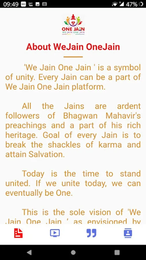 WeJain OneJain app is a platform for all seekers to experience oneness with Bhagwan Mahavir irrespective of the sect they belong to