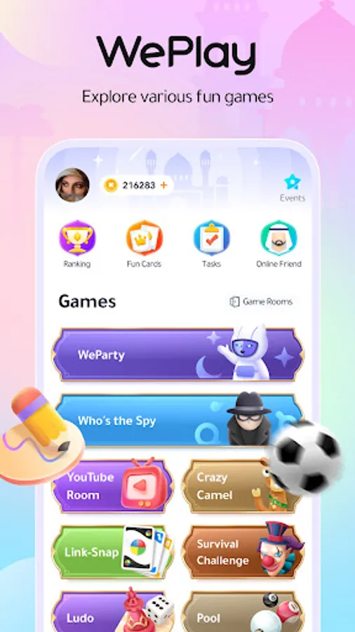 ويبلاي هو عبارة عن تطبيق ألعاب جماعية مسلية للشباب. يربط بين الأصدقاء من مختلف الأجناس. سوف تحصل على المزيد من المرح عند لعب هذه الألعاب!