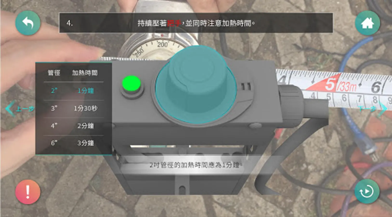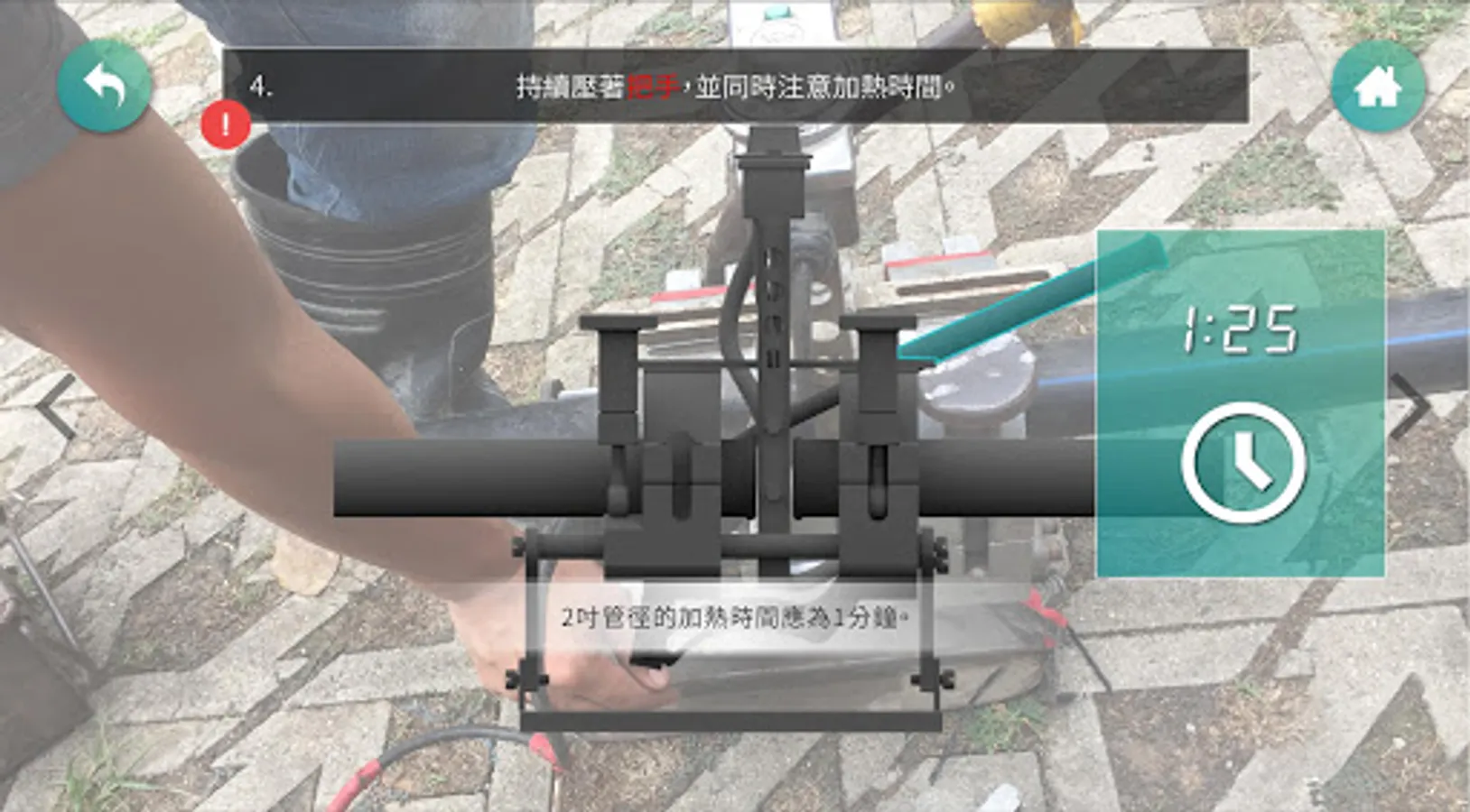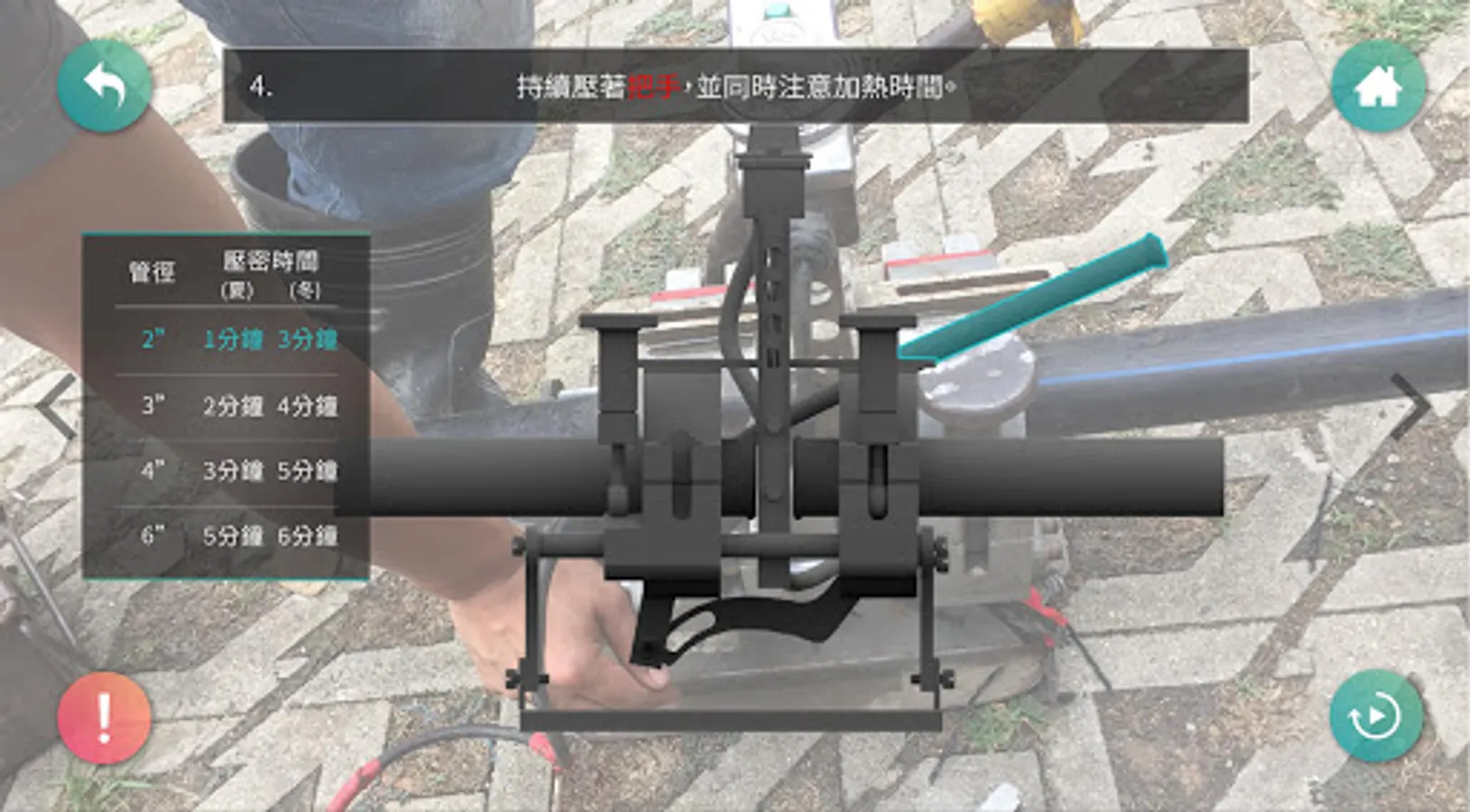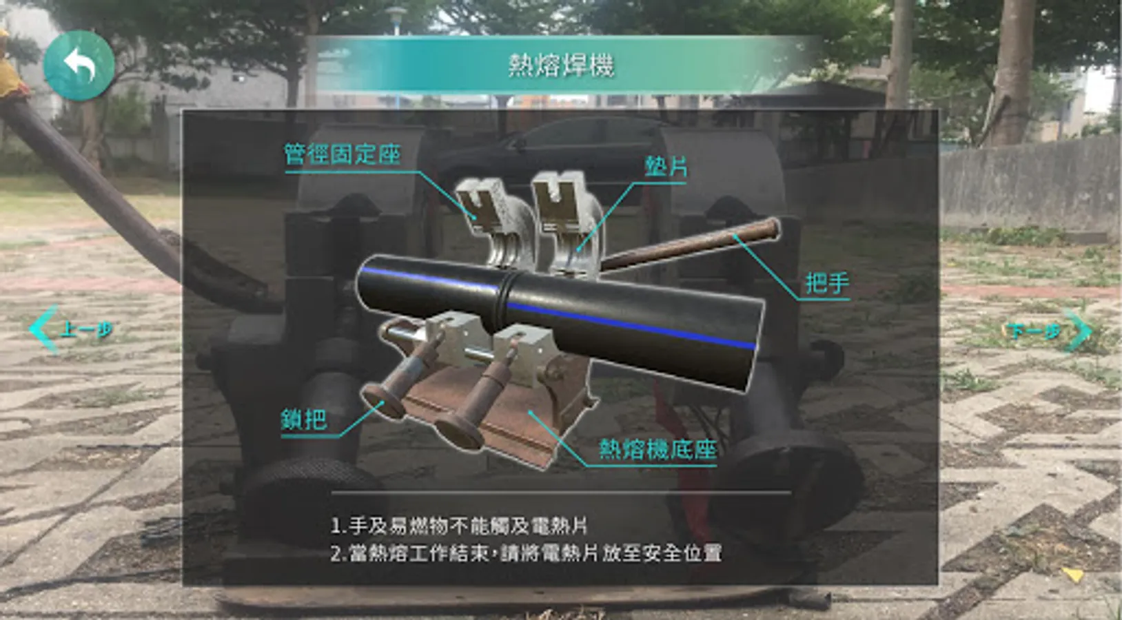 以虛擬實境方式進行熱熔機使用教學,讓簡水系統各管理員如同親身操作ㄧ般,了解熱熔機原理,藉此經驗當實際操作時更容易上手,包括熱熔機零件的名稱,尺寸,SOP,且熱熔時所需的溫度、管徑、時間等資訊都納入教學。