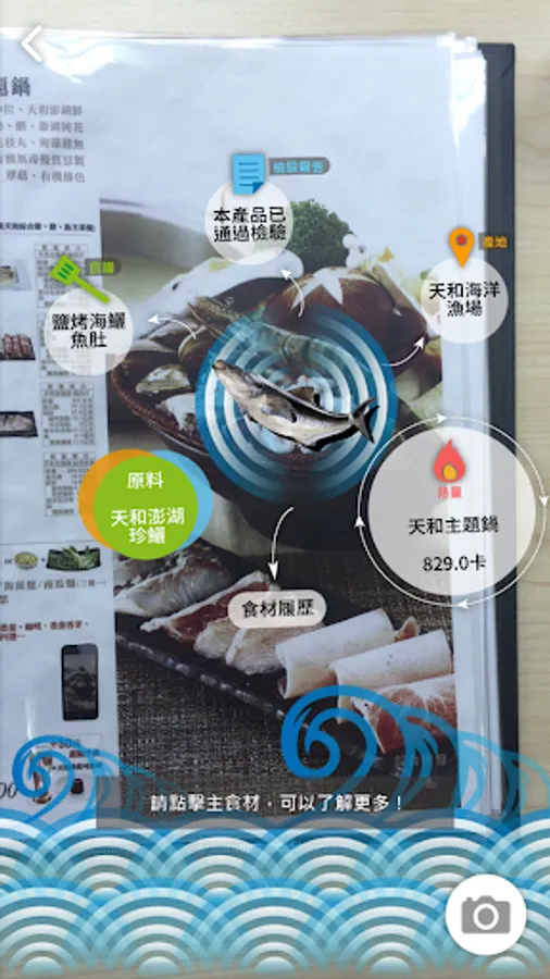 透過AR技術,天和鮮物要教大家「識食」,讓消費者輕鬆透過智慧型手機(或平板)鏡頭,隨時拍、隨時了解店內所使用食材的生產履歷。食材來自那個農場?哪個產地?產地在哪?重金屬、生菌數、藥物殘留等相關檢驗報告?讓消費者清楚知道食材供應來源,不只品嚐料理的美好滋味,更「看」的到食材的新鮮、安全。