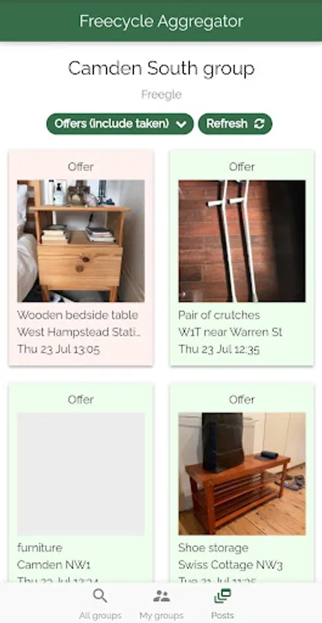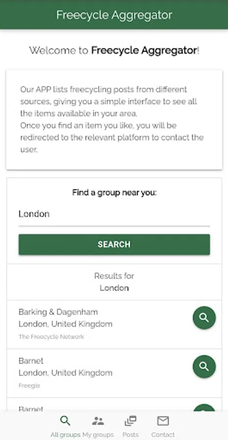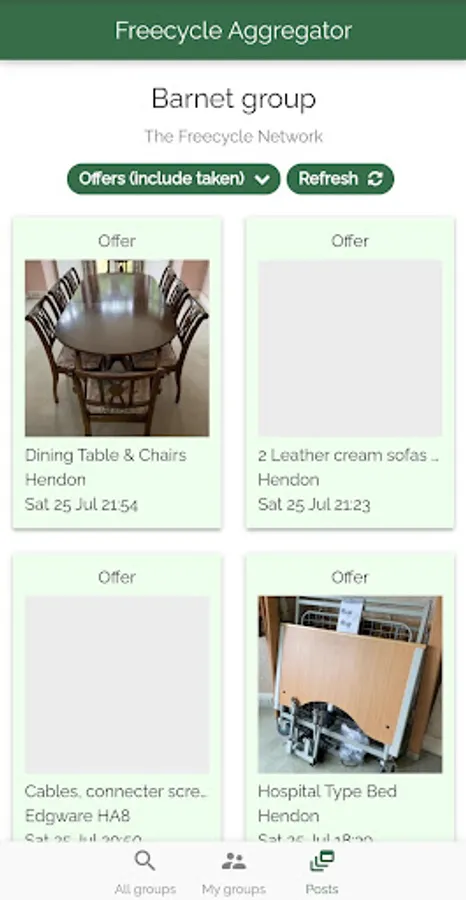 Our APP lists freecycling posts from different sources, giving you a simple interface to see all the items available in your area.