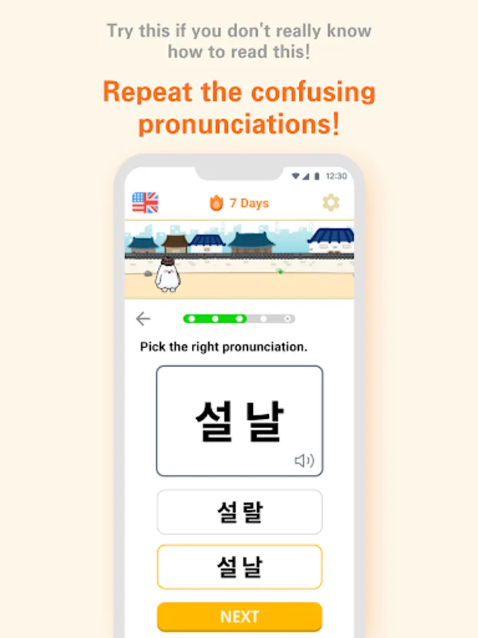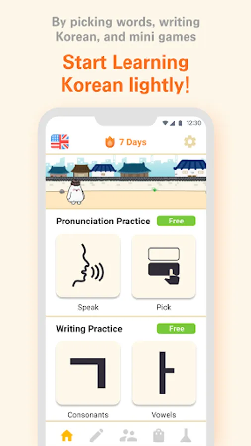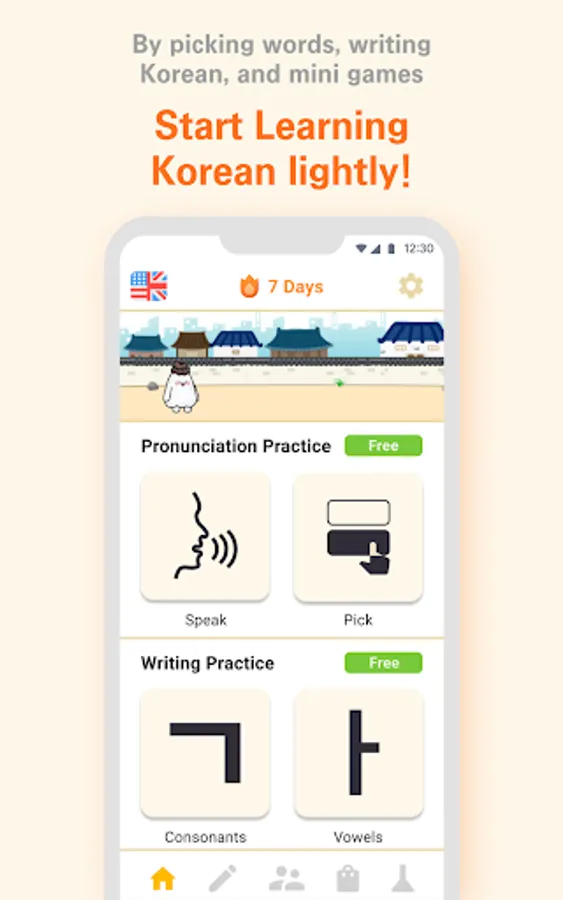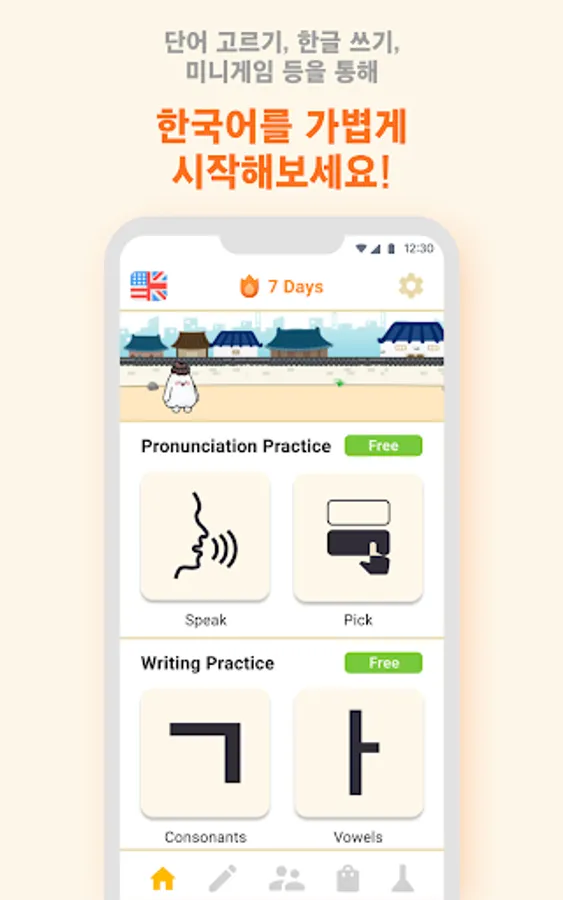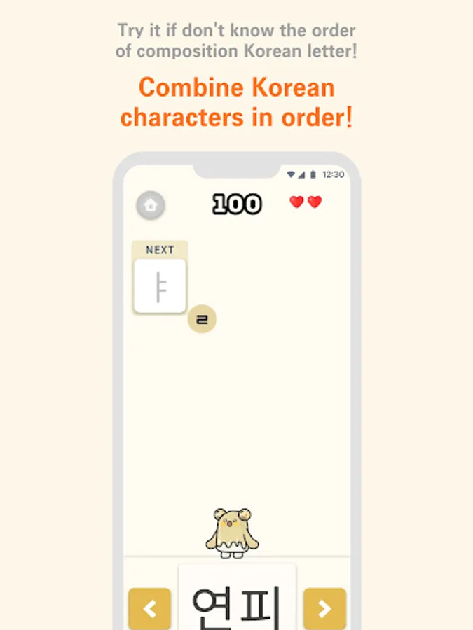 4. 한글 구성 순서를 연습하고 싶다면 미니게임을 한다.