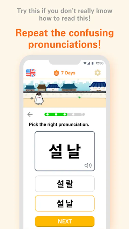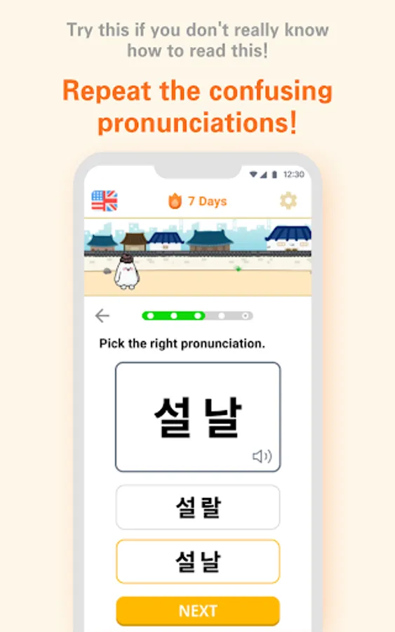 2. 단어를 듣고 맞는 발음을 맞히고 싶다면 단어 고르기를 한다.