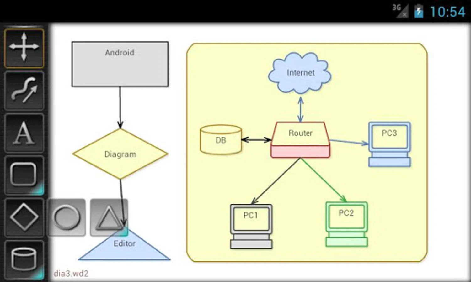 Diagram editor for Android phones and tablets. Create diagrams, flowcharts, mind-maps, uml-like diagrams and sketches quickly and easily. Free-hand sketching. Share diagrams with others via Facebook, Picasa, export to bitmap or send by email. New: export diagrams to SVG format.