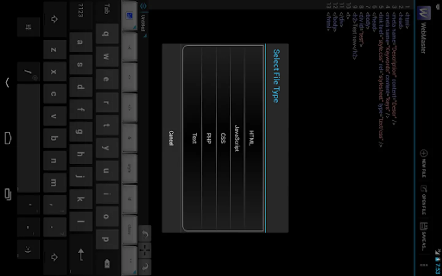 HTML Editor: WebMaster Lite - fast and lightweight (~1Mb only) HTML editor for web developers. The editor is ideal for web authoring and programming on the go. Have a handy source code editor in your pocket!