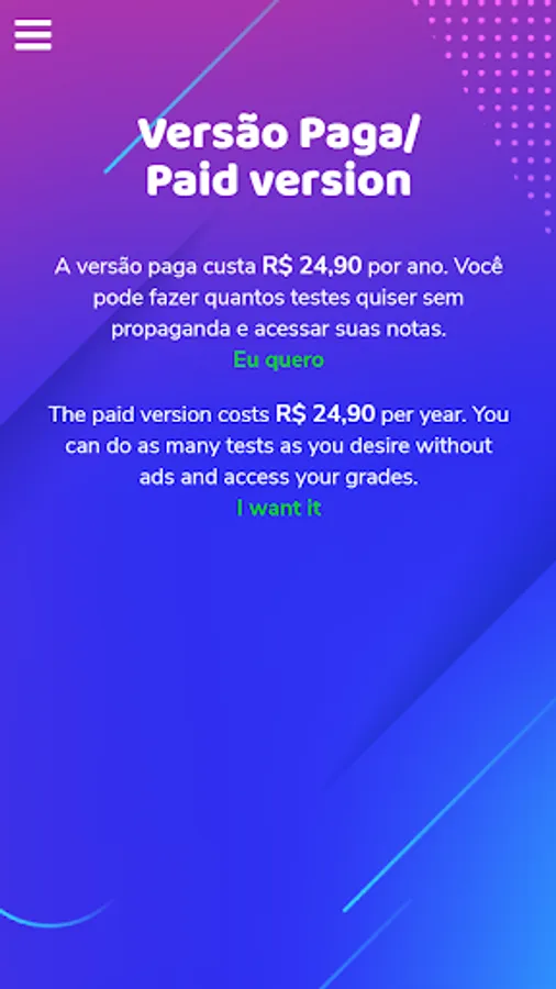Knowing verbs facilitates communication, so start your studies right now. In the free version, you can do an hourly test, with the display of a short advertisement. Cool huh?