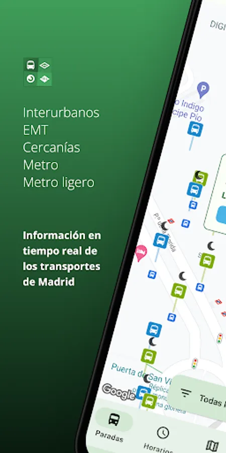 Query timeouts at any stop any transport Madrid: intercity buses, EMT, metro and light rail.