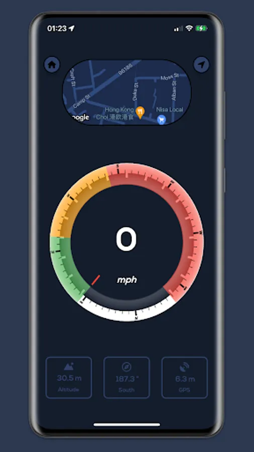 8 - Speedometer with altitude, heading and GPS accuracy.