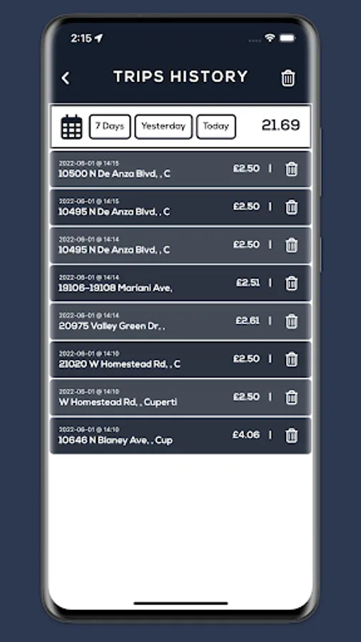 3 - Keep records of all the trips in History with sorting functionality.
