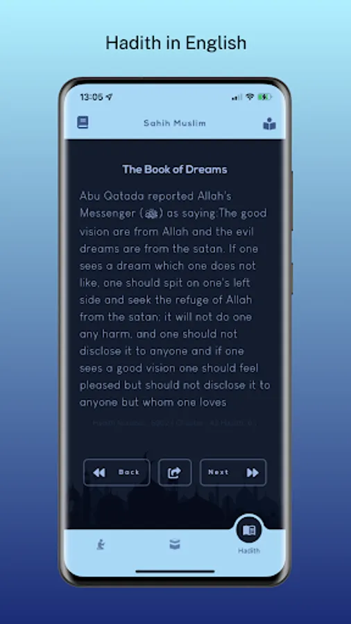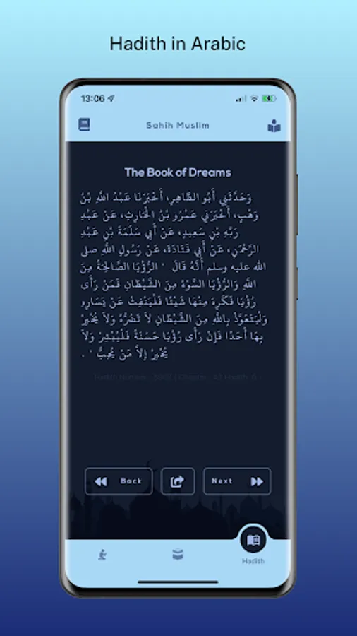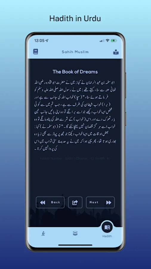 Hadith books with chapter selection capability in Arabic, Urdu and English.