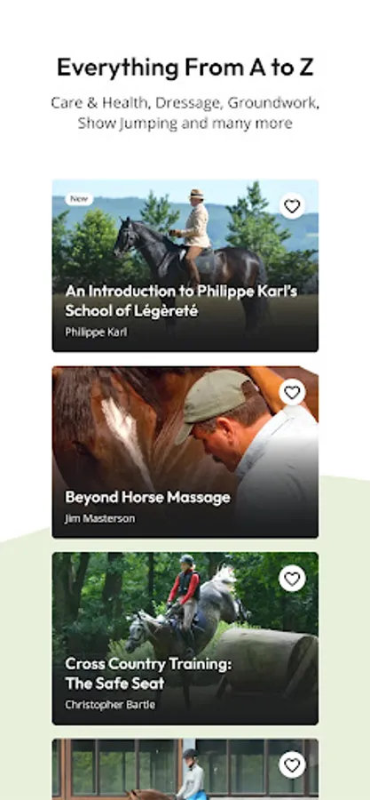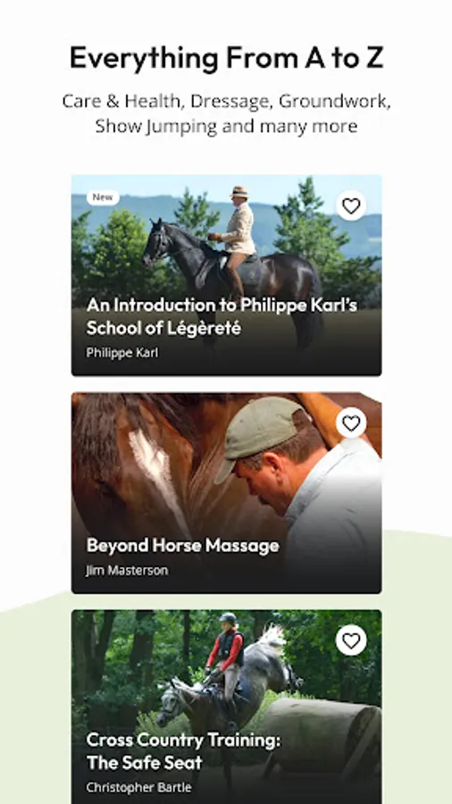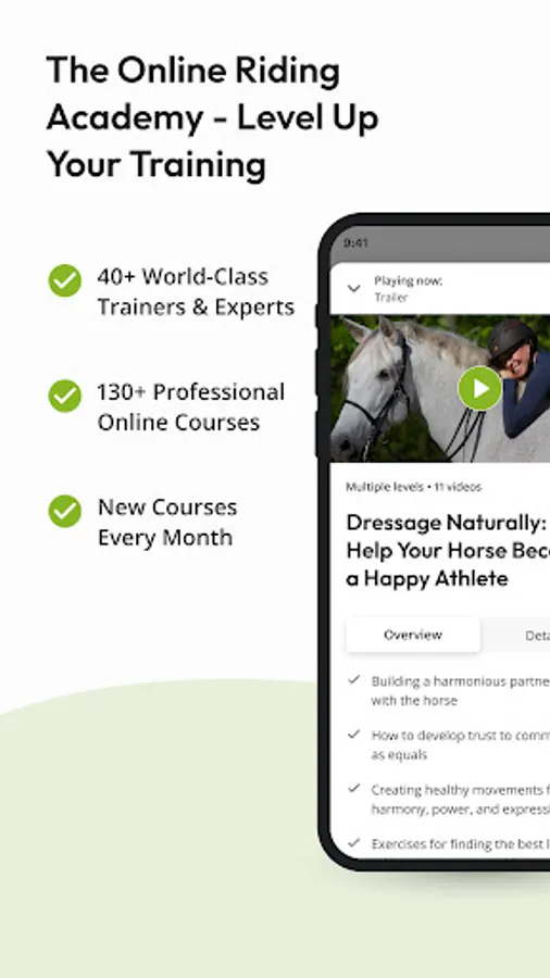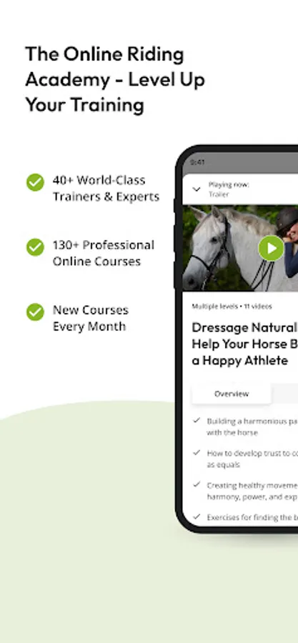 Master your training with courses from Dressage, Flatwork, Groundwork to Hunter Jumper and much more. Find our qualified courses with concrete exercises, inspiration, tips and tricks, and a lot of attention for detail. Select courses also feature additional course material such as instruction sheets, layout plans and much more.
