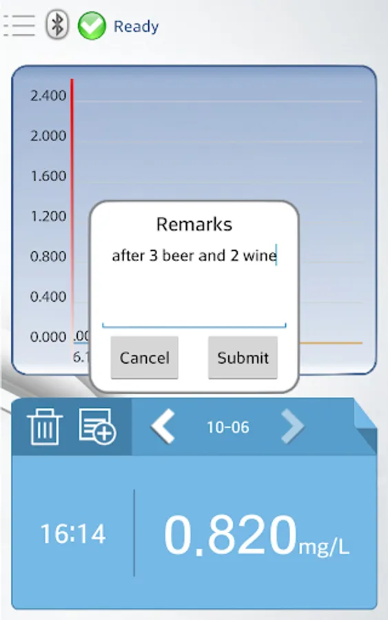 - BAC test data is logged and plotted as a graph. Sequential tests over time allow users picture how their body react to alcohol after consumption.
