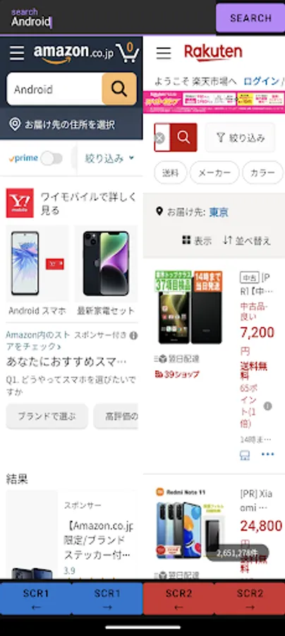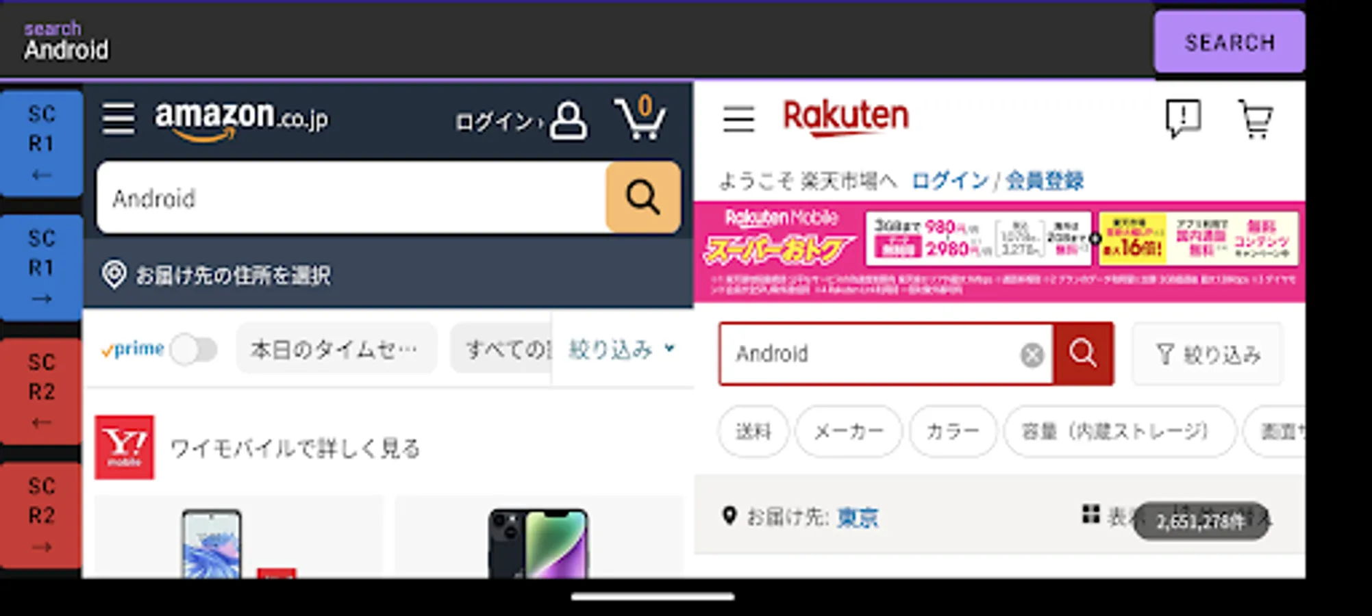 Divide the screen into two and browse while comparing the search results of Amazon and Rakuten Ichiba