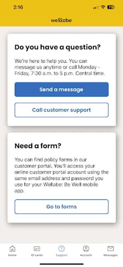 Get more out of your insurance benefits. The Wellabe: Be Well™ app makes it easy for you to securely complete policy-related tasks when it’s convenient for you. Depending on what plan you have, you can: