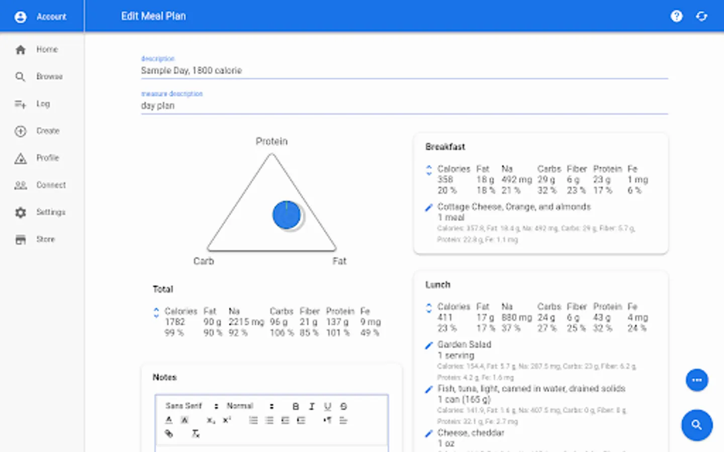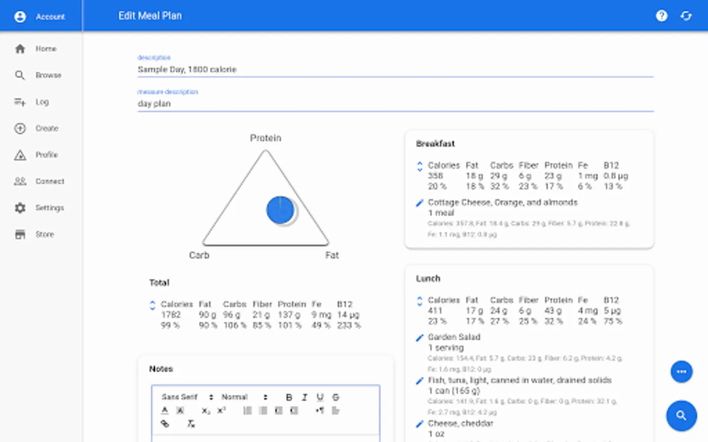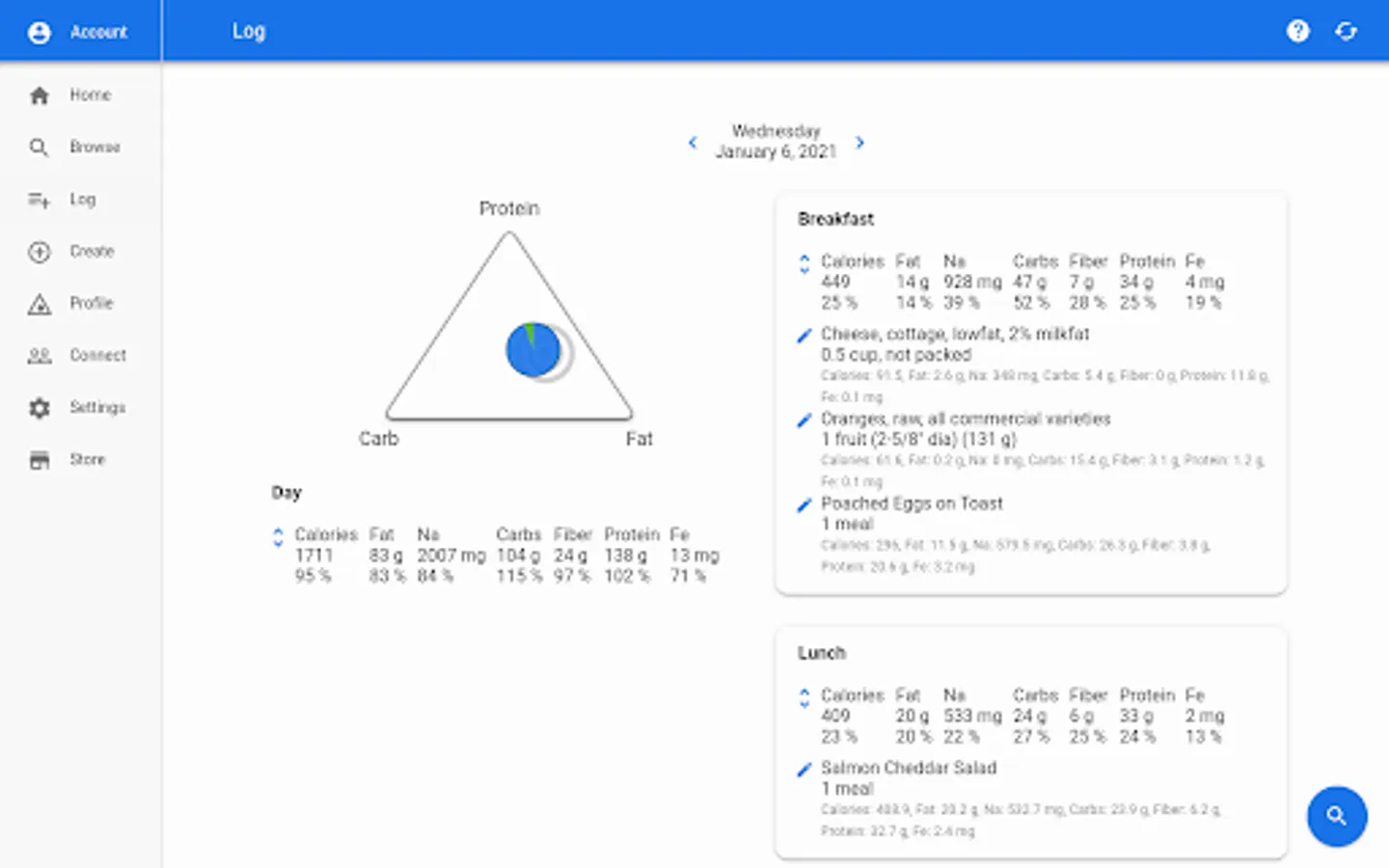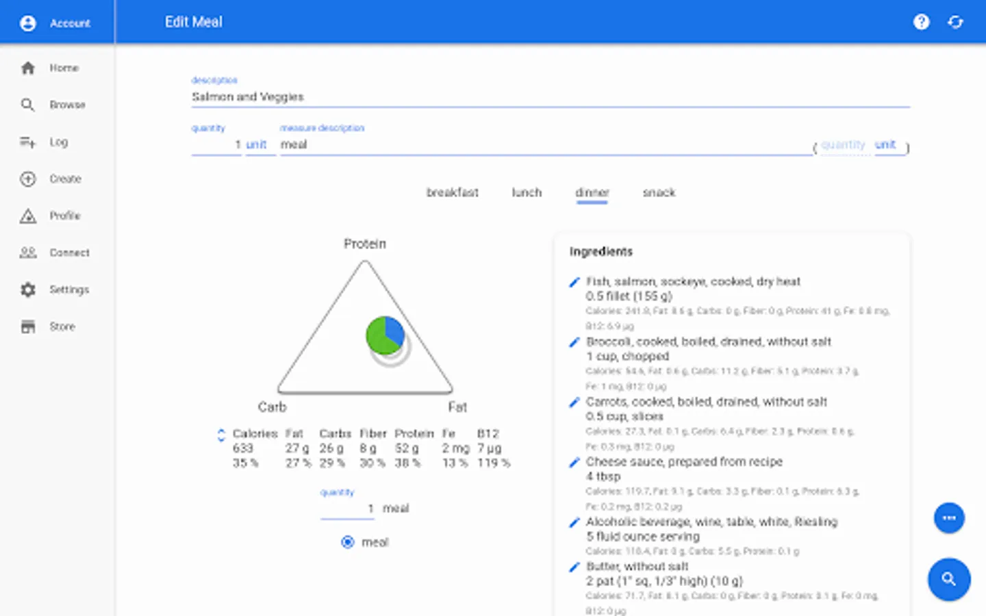 WellBalancedMeal provides nutritional analysis, meal planning, and food journalling, for everybody. Plan a weight loss diet, plan a maintenance diet, watch your sodium intake, monitor the nutrients you care about. Browse your food library, add labeled food items, create recipes, meals, and full day meal plans. Keep track of your eating in your daily food journal. All with complete nutritional information.