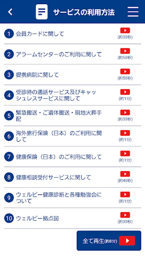 In the unlikely event of illness, injury or accident, you can check the alarm center telephone number from each country.