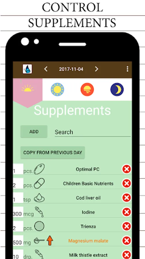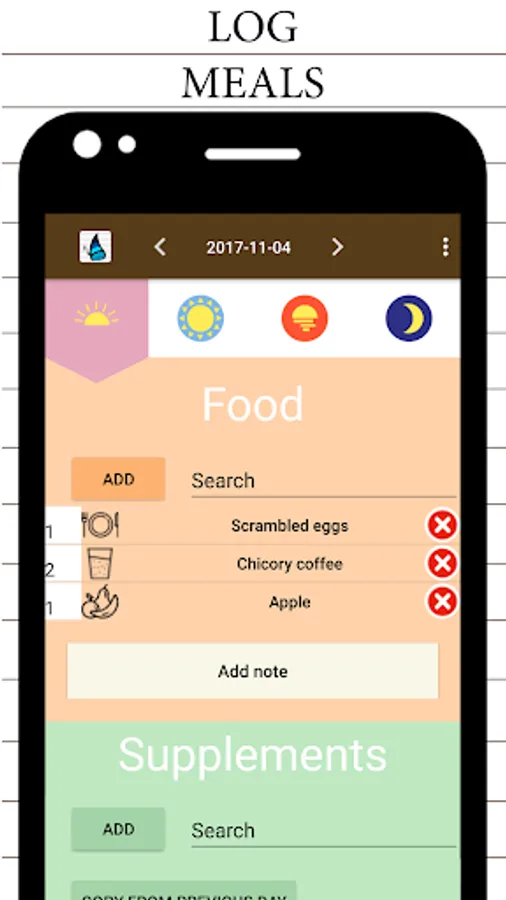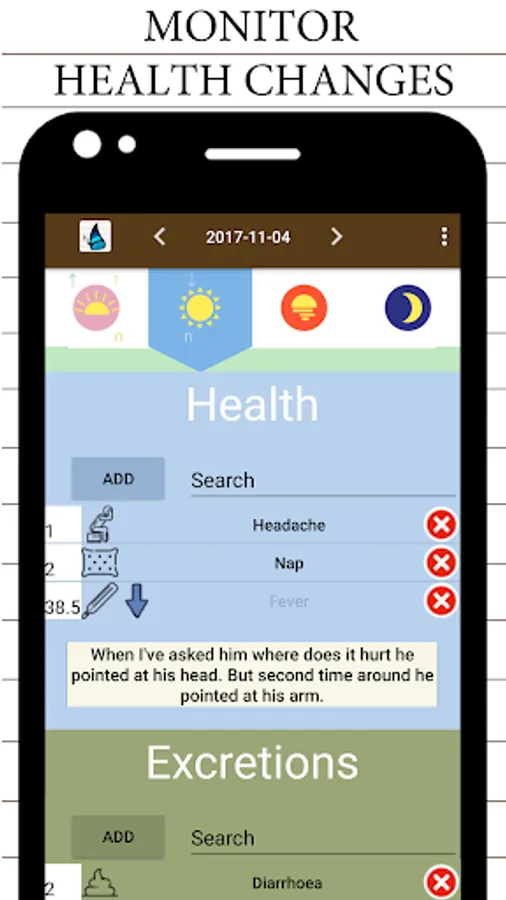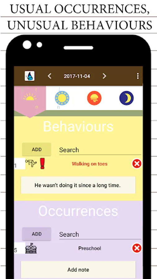 Autism Diary is divided into 4 times of the day (with option to set their timeframes) for better view of the whole day, but you can fill it in according to your liking.