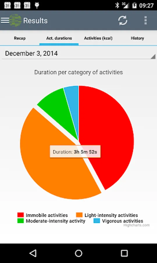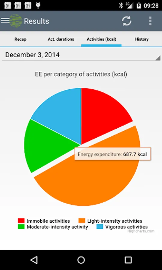 The accelerometry data collected by your smartphone allow estimating the intensity of your physical activities and the associated energy expenditure.