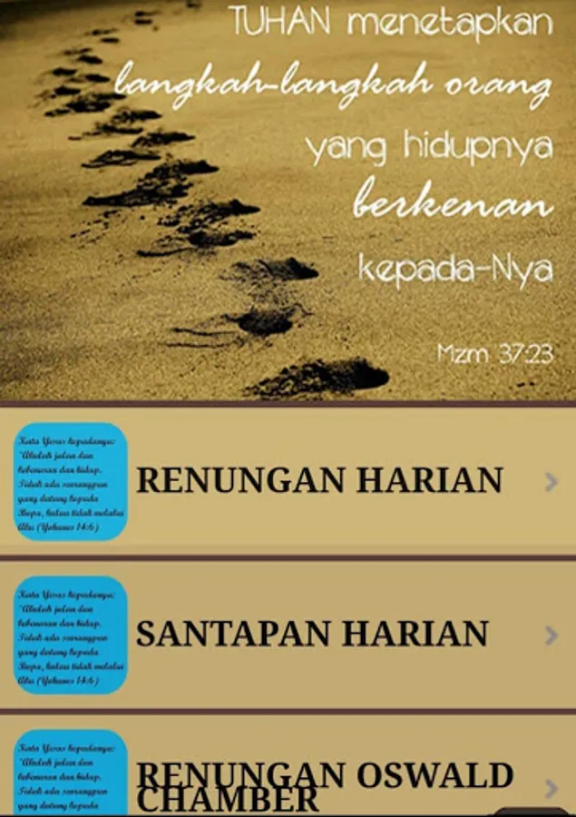 Renungan harian kristen, menyampaikan fiman Tuhan yang menjadi pelita hidup dan air hidup untuk saat teduh dan santapan rohani. Bagus untuk anda yang ingin mengen lebih dekat Tuhan dan semakin mendalami atau memperbaiki diri dengan ayat - ayat penyejuk hati