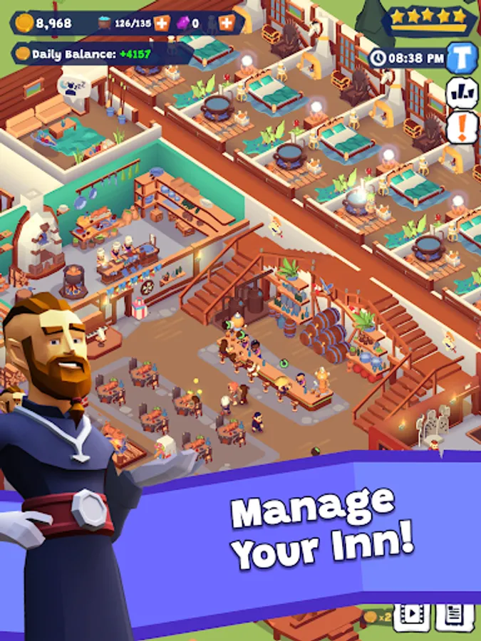 🏅Good inn-vestment: Plough your profits back into the business in this tavern clicker game by purchasing new services including restaurants, more luxurious lodging, and fun facilities including gyms, bathhouses and beaches to turn your inn into a luxury medieval resort.