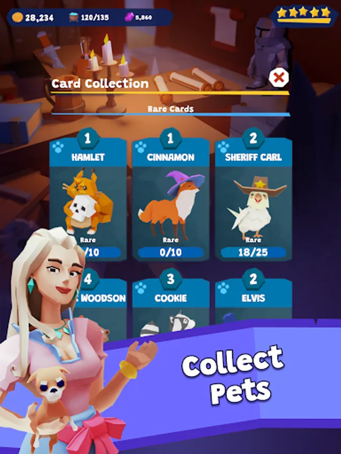 🔨Medieval menagerie: As you progress through the game, collect cute pets and adorable farmyard animals that will roam around your taverns to the delight (and surprise) of your guests.