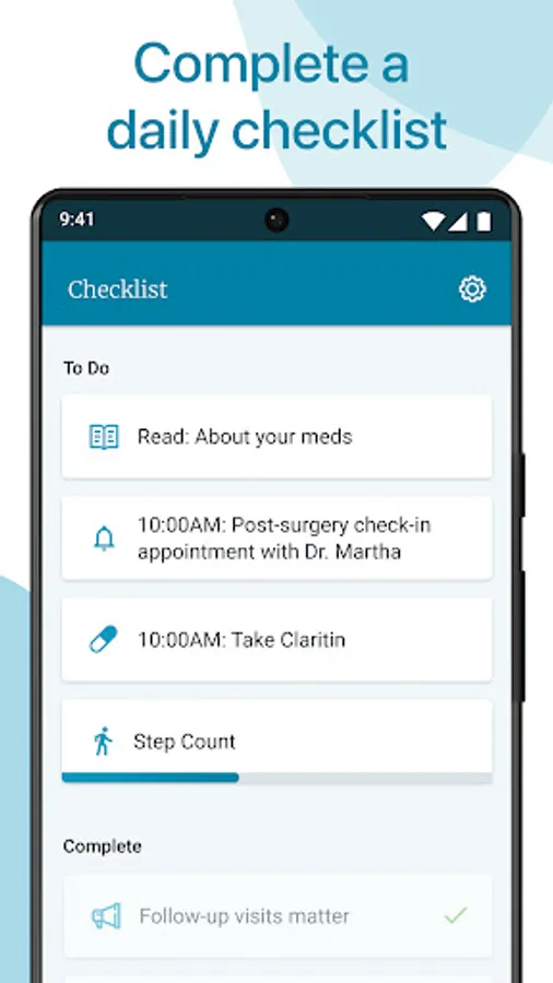 Set reminders to help remember your medications and appointments, and track your steps and progress over time. You’ll learn what to expect and feel better supported as you go.