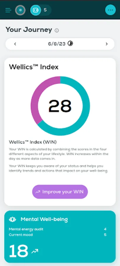 Set your own goals and get motivated by your results. Keep track of your journey with Wellics™ Index.