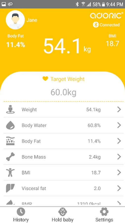 This application allows you to easily monitor essential health and fitness data for : Body Weight, Body Fat Rate, Body Water, Bone Mass, Muscle Mass , BMI ,BMR and Visceral Fat. From the graphic displays, you can check changes in health trends. Adoric Health helps all our users stay on track for a healthier lifestyle.