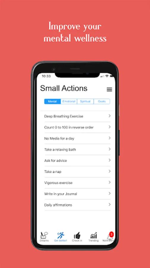 While it's great to have access to mental health professionals, most of the time we can manage our own wellness through constructive routines and small actions. Some of these actions are easy for some but near impossible for others. That’s why personalized self-care is so effective. We focus on mental, emotional improvement but don’t overlook the benefits of spiritual wellness. We always respect your spiritual traditions.