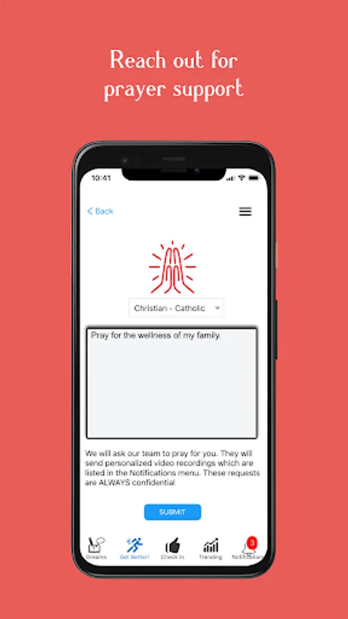 Other times, you just need a little support. We have a network of prayer providers who will respond to your request with a video message. Even if you're not religious, it is so encouraging to know that someone cares. You can replay these videos at any time.