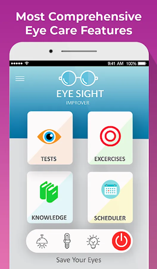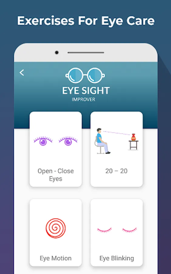 We have taken a very comprehensive approach towards eye care and eyesight improvement through our Eye Care: Eye, Test, Exercise & Blue Light Filter app. The main cause for eye problems as per research is stress, excessive screen use and sleep disorders. Eye doctors recommend eye exercise and periodic eye tests to keep this unique human resource in best of health. We have combined eye diagnostics and eye exercise in one app so that our users can take eye tests and be reminded of eye exercise throughout the busy work day; all in Eye Care: Eye, Test, Exercise & Blue Light Filter.