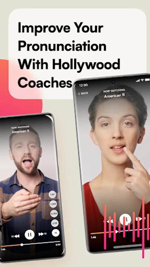 BoldVoice's accent coaches are the best in the industry, helping Hollywood stars master their accents. They will be your guides in your path to clear and confident English pronunciation. With fun, bite-sized video lessons, you will master the sounds, intonation, rhythm, pitch, and all the elements of the American accent.