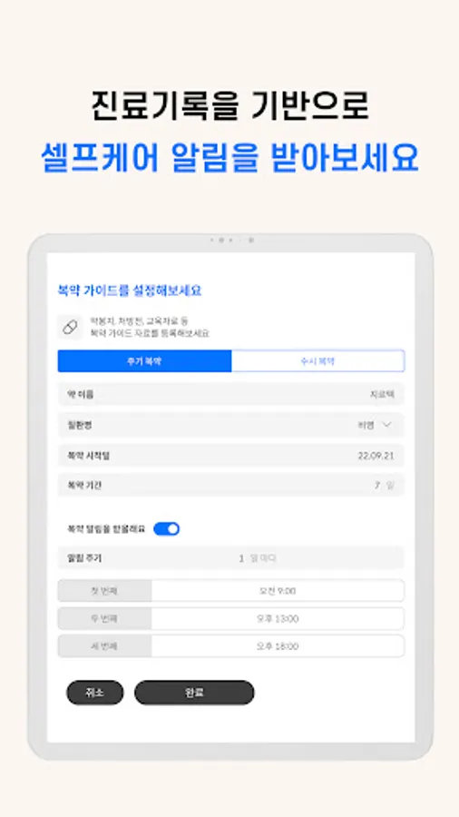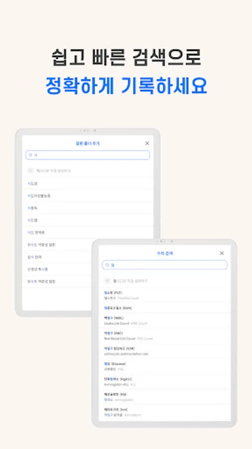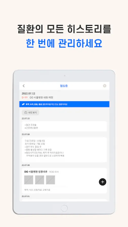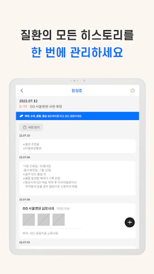 Easily and quickly record diagnoses, prescriptions, and schedules for each disease.