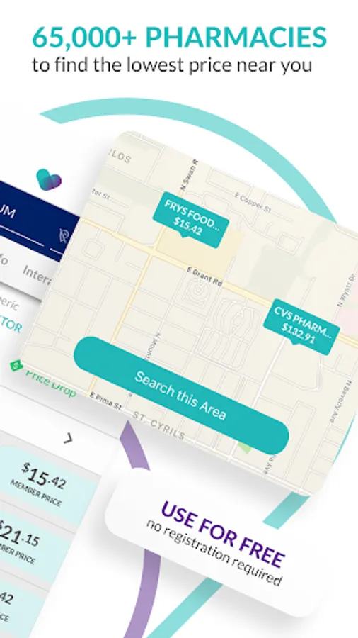 With your free membership, you can search for savings on prescriptions, get discounts at pharmacies near you, and save an average of 65%* on your Rx medications!**