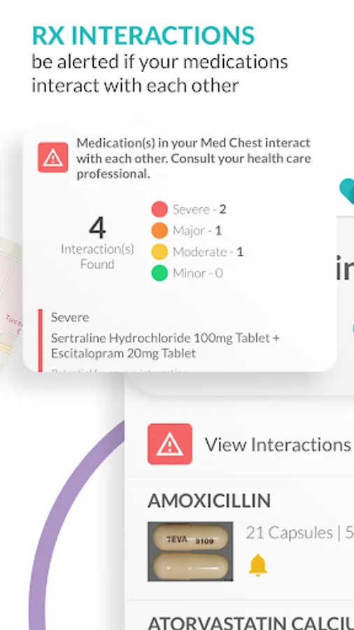 • Drug interaction warnings that alert you to conflicts with saved medications